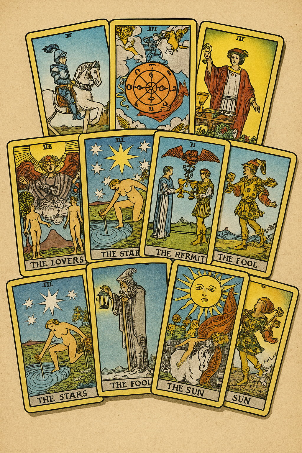이전의 타로 카드들은 메이저 아르카나에만 그림이 있었고, 마이너 아르카나는 단순한 숫자와 기호로만 이루어져 있었어요. 하지만 웨이트 덱은 마이너 카드까지 장면화된 이미지를 담아 직관적으로 리딩할 수 있게 만들어졌죠. 이 점이 오늘날까지도 웨이트 덱이 사랑받는 핵심 이유 중 하나예요.